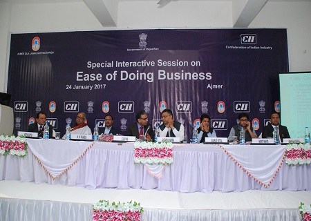 भारतीय उद्योग परिसंघ (सीआईआई), राजस्थान सरकार के उद्योग विभाग एंव अजमेर जिला लघु उद्योग संघ द्वारा संयुक्त रूप से व्यापार को आसान बनाने पर इंटरेक्टिव सेशन का अजमेर में आयोजन किया गया। उद्योगों को बीते कुछ माह में सरकार द्वारा व्यापार को आसान बनाने के लिए उठाए गए कदमों के बारे में जानकारी देने तथा इसके बारे में उद्योगों को जागरुक करने के उद्देश्य से इस सत्र का आयोजन किया गया। इस सत्र के दौरान राजस्थान प्रदूषण नियंत्रण बोर्ड, श्रम विभाग, फैक्ट्रि एंड बॉयलर, कॉमर्शियल टैक्स विभाग, अजमेर विद्युत वितरण निगम, आरआईआईसीओ, बीआईपी तथा उद्योग विभाग द्वारा प्रेजेंटेशन दी गई।