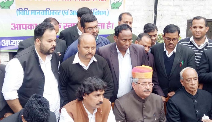 वरिष्ठ अधिवक्ता व पूर्व जिला प्रमुख सत्यकिशोर सक्सैना ने सम्बोधित करते हुये वकीलों से भाजपा के भ्रामक प्रचार व सोशल मीडिया के दुरूपयोग को रोकने के लिये वकीलों को अभी से सजगता बरतनी आवश्यक है चूंकि चुनावों के दौरान माहौल को खराब करने का प्रयास भाजपा के षडयंत्र का एक हिस्सा है जिसे के लिये अभी से ही वकीलों को कमर कस लेनी चाहिये।
