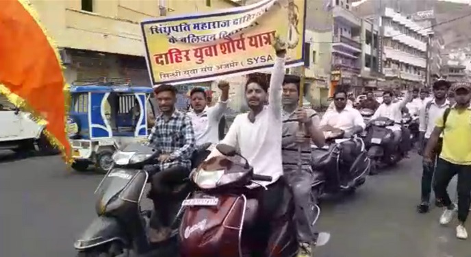 आज दिनांक 16 जून 2019, रविवार को महाराजा दाहिरसेन के बलिदान दिवस के अवसर पर अजमेर शहर के युवाओं द्वारा पहली बार सिंधी युवा संघ, अजमेर(SYSA) के तत्वावधान में विशाल दाहिर युवा शौर्य यात्रा का आयोजन किया गया। इस यात्रा का प्रमुख उद्देश्य युवाओं को सिंधुपति महाराजा दाहिरसेन के जीवन व बलिदान से परिचित करवा कर प्रेरित करना रहा। इस यात्रा में विभिन्न समाजों के बहुसंख्यक युवा सम्मिलित हुए। अलसुबह 8 बजे अनेकों युवा अपने-अपने वाहनों पर अमर शहीद हेमू कालाणी चौक पहुँचे जहाँ से यात्रा की शुरुआत हुई। देशभक्ति नारों व जोशीले गीतों की धुनों पर झूमते हुए युवा वाहन रैली के रूप में आगे बढ़ते हुए यात्रा हरिभाऊ उपाध्याय नगर स्थित सिंधुपति महाराजा दाहिरसेन स्मारक पहुँचे। जहाँ पर युवाओं द्वारा महाराजा दाहिरसेन की प्रतिमा पर माला व पुष्प अर्पण करके युवा बलिदानी के त्याग व वीरता को नमन किया गया तथा उनके जीवन आदर्शों पर चलने का संकल्प लिया गया। आदि भवानी हिंगलाज माता के स्थान पर दीप प्रज्जवलन किया गया जहाँ अक्षय खत्री व मनोज झामनानी ने पंजड़े पेश किये। तत्पश्चात युवाओं द्वारा स्मारक स्थित अमर शहीद हेमू कालाणी की प्रतिमा पर माल्यार्पण कर प्रतिमा के समक्ष राष्ट्रगान किया गया। सिंधी युवा संघ, अजमेर(SYSA) के सदस्यों द्वारा मौजूद युवाओं को महाराजा दाहिरसेन के प्रेरणादायी जीवन से अवगत कराया गया तथा देशभक्ति गीतों की प्रस्तुतियां दी गयीं। साथ ही साथ आगामी मानसून के समय युवाओं को वृक्षारोपण के लिए भी प्रेरित किया गया। देशभक्तिपूर्ण वातावरण में कार्यक्रम को पूर्णता दी गयी। अंत में सिंधी युवा संघ, अजमेर(SYSA) के श्री श्याम लालवानी ने सभी युवाओं का आभार व्यक्त किया। इस यात्रा में मुख्य रूप से नितेश खेमचंदानी, विनोद बेहरानी, नितेश भाटिया, हितेश मंगलानी, दीपेश सैनी, हरीश शाहनी, अक्षय खत्री, सोनू लालवानी, मोहन टिलवानी, दुर्गेश सोनी, विक्रम मूलचंदानी, दीपक निहलानी, सनी केवलरामानी, ऋषि मंगलानी, ललित भगतानी, इन्दर झामनानी, सुरेश चाँदवानी, रुपेश खानवानी के साथ साथ अनेक युवा मौजूद रहे।