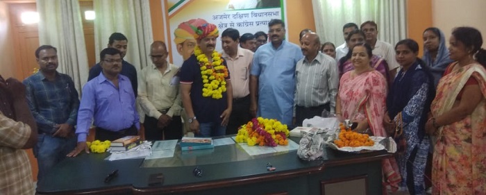 आज दिनांक 05 अक्टूबर 2019 – दक्षिण विधानसभा अजमेर में राजकीय उच्च माध्यमिक विद्यालयों में वर्तमान में नियुक्त विभिन्न विद्यालयों में स्थानान्तरित होकर आये प्रधानाचार्यो एवं प्रध्यापकों द्वारा पी.सी.सदस्य एवं दक्षिण विधानसभा प्रत्याषी श्री हेमन्त भाटी का माल्यार्पण व साफा बाध कर आभार व्यक्त किया गया। सभी अधिकारियों एवं कर्मचारियों ने श्री भाटी की सहहृदय सहजता तथा निस्वार्थभाव से किये गये कार्य की प्रषंसा की।