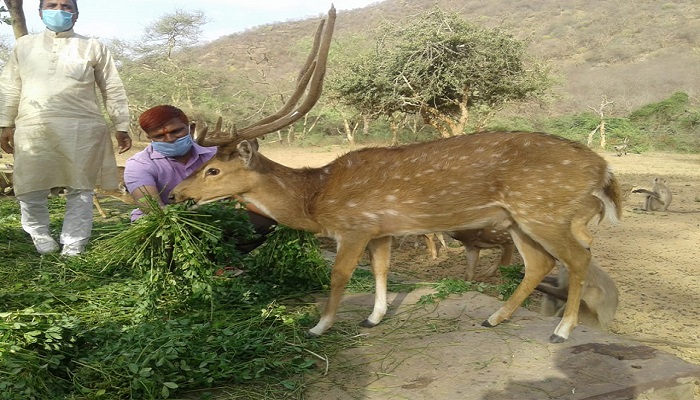 लॉक डाउन में जवाहर फाउंडेशन द्वारा डियर पार्क पुष्कर में हिरनो को चारा खिलाया