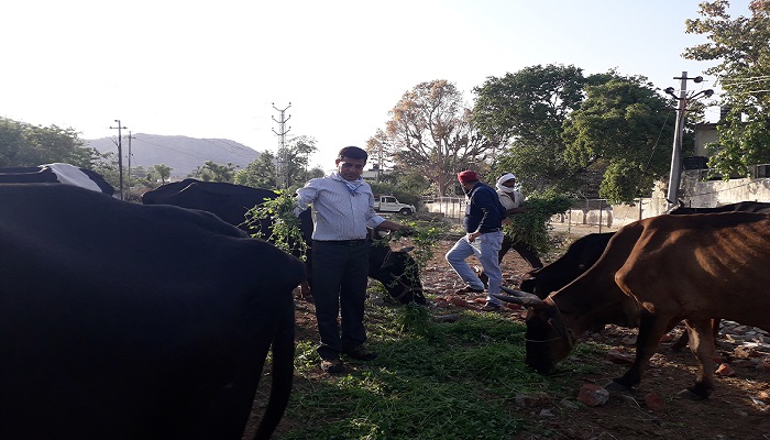 अजमेर ! 12/5/20 ! मंगलवार! द स्मार्ट अजमेरियन ने अपना सामाजिक सरोकार निभाते हुए गायों को चारा खिलाया ! अध्यक्ष सोना धनवानी ने बताया लोकडाउन मे जानवरों को भयंकर गर्मी मे बहुत परेशानी हो रही है इसको देखते हुए हजारी बाग चौराहा पर गायों को चारा खिलाया गया ! उपाध्यक्ष गुलजीत सिंह छाबड़ा ने भगवान से प्रार्थना की कोरोना महामारी का अस्तित्व समाप्त हो जाए तथा पुरी दुनिया मे जनसाधारण का जीवन समान्य रूप से शुरू हो जाये ! इस अवसर पर सोना धनवानी व गुलजीत सिंह छाबड़ा मौजूद थे