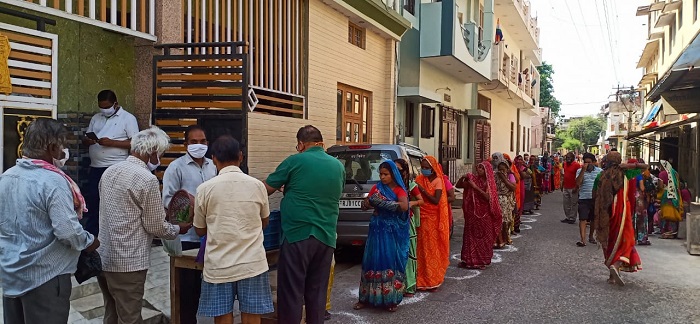कांग्रेसियों ने किया 500 परिवारों को हरी सब्जी फल एवं 175 को सुखी खाद्य सामग्री किट का वितरण