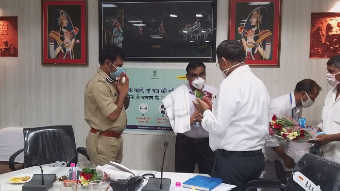 पुलिस महानिरीक्षण डॉ. हवा सिंह घुमरिया, जिला कलक्टर श्री विश्वमोहन शर्मा, पुलिस अधीक्षक श्री कुंवर श्री राष्ट्रदीप ने आज कलेक्ट्रेट सभागार में डॉक्टर्स-डे पर कोरोनाकाल में बेहतरीन काम करनेवाले चिकित्सकों एवं नर्सिंग कर्मियों का सम्मान किया। इस अवसर पर पुलिस महानिरीक्षक ने चिकित्सकों व स्टाफ के समर्पण भाव में काम करने की प्रशंसा की।