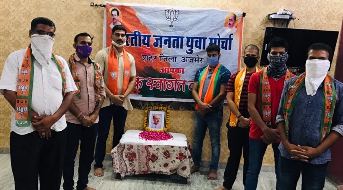 भाजपा जिलाध्यक्ष प्रिय शील हाडा के निर्देशानुसार भारतीय जनता युवा मोर्चा शहर जिला अजमेर की ओर से भारतीय जनसंघ के संस्थापक, महान शिक्षाविद् एवं प्रखर राष्ट्रवादी चिंतक आदरणीय डॉ. श्यामा प्रसाद मुखर्जी जी की जयंती पर युवा मोर्चा कार्यकर्ताओं ने पुष्पांजलि कर नमन किया। इस अवसर पर भाजयुमो जिलाध्यक्ष दीपक राठौर ने बताया कि देश की एकता व अखण्डता के लिए अपना सर्वस्व न्यौछावर करने वाले डॉ. मुखर्जी जी के आदर्श, मूल्य व सिद्धांत हम सभी के लिए मार्गदर्शक व प्रेरणादायी हैं।