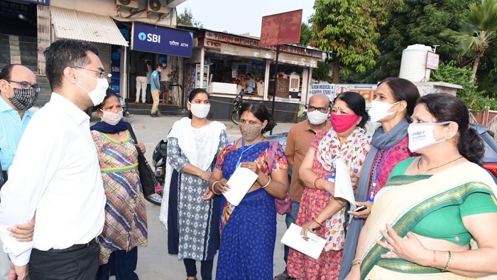 जिला कलक्टर ने वैशाली नगर क्षेत्र में किया मास्क वितरण