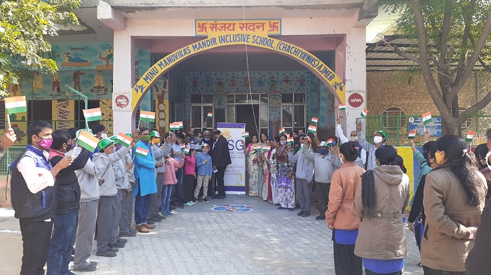 दिनांक 26 जनवरी 2021ः राजस्थान महिला कल्याण मण्डल परिसर चाचियावास में जैन सोषियल ग्रुप क्लासिक राजस्थान ने दिव्यांग प्रषिक्षणार्थियों के साथ झण्डारोहण कर 72 वॉ गणतन्त्र दिवस मनाया।