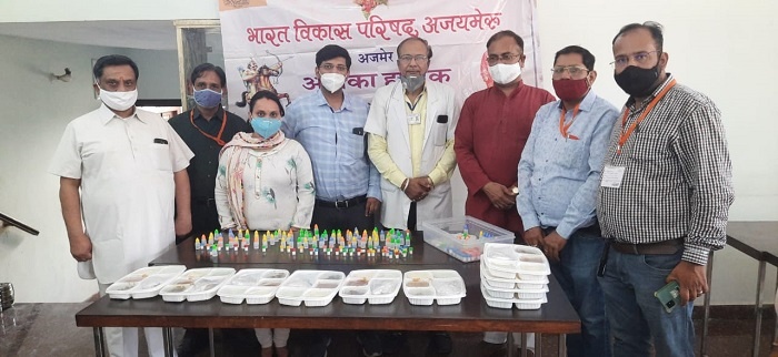 अजमेर, भारत विकास परिषद अजयमेरू द्वारा होम क्वारंटाइन कोरोना पीड़ित परिवारों को निशुल्क भोजन व्यवस्था के साथ आज होम्योपैथी इम्यूनिटी बुस्टर दवा का वितरण किया गया । शाखा सचिव अनुपम गोयल ने बताया कि संस्था द्वारा प्रतिदिन भोजन व्यवस्था के साथ आज वशिष्ट क्लिनिक बी.के काल नगर के डाक्टर राघव शर्मा के सहयोग से सभी परिवारो को होम्योपैथी इम्यूनिटी बूस्टर दवाई का वितरण किया गया । शाखा संरक्षक सतीश बंसल ने बताया की संस्था द्वारा निशुल्क भोजन वितरण का यह प्रक्लप 19 अप्रैल 2021 से 60 भोजन पैकट से प्रारम्भ हुआ जो आज 270 से अधिक परिवारो मे 900 से अधिक भोजन पैकट प्रतिदिन हो गया है । संस्था द्वारा भोजन पैकट की बढती मांग के कारण भोजन बनाने के लिए अन्नपूर्णा रसोई की व्यवस्था की लोढा धर्मशाला, प्रगति नगर कोटडा, भारत विकास परिषद भवन पंचशील नगर मे तीन जगह की गई है । जल्द ही आदर्श नगर मे भी शुरू की जायेगी । शाखा अध्यक्ष हनुमान गर्ग श्रीया ने बताया की अजमेर शहर मे जिस भी होम क्वारंटाइन कोरोना पीडित परिवार को भोजन बनाने मे कठिनाई आ रही है वो हमे अपना नाम , पता वाट्सएप माध्यम से भेजे हमारी संस्था उसे सुबह व शाम को भोजन उपलब्ध कराएगी। शाखा कोषाध्यक्ष अशोक टांक ने बताया कि पूरे शहर से भामाशाह का सहयोग मिल रहा है जिससे कार्य मे किसी प्रकार कि कोई कमी नही आ रही है सभी भामाशाह का बहुत बहुत आभार । भोजन पैकट कि मांग पुरे शहर आ रही है जिसे शाखा के कार्यकर्ताओं के द्वारा समय पर उपलब्ध कराया जा रहा है शाखा द्वारा भोजन पैकट के साथ साथ इम्यूनिटी बुस्टर दवाओं के किट समय समय पर सभी परिवार को उपलब्ध कराये जा रहे है। आज के सेवा कार्य मे शाखा के पवन मालानी, हेमन्त अग्रवाल, आशीष मालानी, सचिन सोनी, नरेन्द्र भाटिया, सुधीर गुप्ता, प्रशांत, मोहन गुप्ता, भरत मेघवाल, राहुल जैन, संदीप दोषी, हेमंत गुप्ता, रचना गोयल,अल्का गुप्ता, ब्रिजेश माथुर आदि साथी कार्यकर्ताओं की सहभागिता रही ।