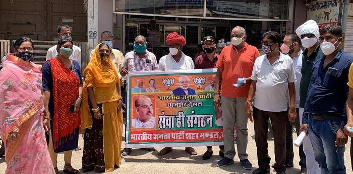 भाजपा नेता राजेंद्र विनायका ने कहा कि नरेंद्र मोदी के नेतृत्व वाली केंद्र सरकार ने धारा 370 हटाने सी ए ए ट्रिपल तलाक कृषि सुधार कानून लाने तथा भव्य राम मंदिर के निर्माण का मार्ग प्रशस्त करने सहित अनेकों जन कल्याणकारी कार्य किए साथ ही वैश्विक कोरोना महामारी से बचाव हेतु स्वदेशी वैक्सीन का भारत में उत्पादन करवाने तथा निशुल्क वैक्सीन लगाने का महत्व पूर्ण कार्य किया इसके लिए हम प्रधानमंत्री नरेंद्र मोदी सहित सिर्फ भाजपा नेतृत्व को हार्दिक बधाई प्रेषित करते हैं ।मंडल अध्यक्ष अनिल राठी ने कहा कि नरेंद्र मोदी ने अपनी सरकार के कार्यों से भारत का नाम संपूर्ण विश्व में ऊंचा किया आज विश्व की महाशक्ति अभी प्रधानमंत्री नरेंद्र मोदी की बात को गंभीरता से सुनते हैं पूरे विश्व में घटित होने वाली महत्वपूर्ण घटनाओं पर भारत के दृष्टिकोण को भी दृष्टिगत रखा जाता है मोदी के नेतृत्व वाली केंद्र सरकार भारत को परम वैभव पर ले जाने के लिए अनवरत प्रयासरत है ऐसे नेतृत्व को हम हार्दिक बधाई देते हैं और आशा करते हैं कि भविष्य में भी वह भारत को विश्व गुरु बनाने के लिए महत्वपूर्ण कार्य करेंगे कोरोना महामारी के मद्देनजर हम सभी से सोशल डिस्टेंसिंग की पालना करने हमेशा मास्क लगाकर रहने तथा बेवजह घरों से बाहर नहीं निकलने तथा अपनी बारी आने पर तुरंत वैक्सीन लगवा कर कोरोना महामारी से अपने क्षेत्र-प्रदेश व देश को मुक्त कराने में अपना योगदान प्रदान करने की अपील करते है वेक्सिन लगवाने के फायदे बताते हुए कहा कि इस वैक्सीन को लगवाने से किसी भी प्रकार की कोई शारीरिक हानि नही होती है व स्वास्थ्य पर दुष्प्रभाव नहीं पड़ता है अतः सभी सहयोग करें। इस मौके पर भाजपा नेता राजेंद्र विनायका, मंडल अध्यक्ष अनिल राठी महिला मोर्चा जिला उपाध्यक्ष पूनम कंवर,मंडल महामंत्री कमल सांखला व अर्जुन सिंह शक्तावत, पूर्व मंडल अध्यक्ष बलराज मेहरचंदानी व बद्री लाल माली महिला मोर्चा महामंत्री अनीता राठी व सीमा जेतवाल,आई टी संयोजक रोहन राठी,भाजपा नेता दशरथ साहू, प्रधान माली,बंटी माली,प्रियंक दाधीच सहित कई कार्यकर्ताओ ने सहयोग प्रदान किया।