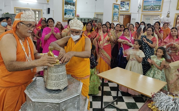 जिनालय समिति के अध्यक्ष विजय दनगसिया व सचिव विनय गदिया ने बताया कि इस दिन श्रीजी की पूजा कर अर्घ चढ़ाऐ गऐ तथा प्रासुक जल से सांय चार बजे मुकेश पाटनी, अनिल गंगावाल, राजकुमार बिलाला, सुभाष गंगवाल, सिद्धार्थ सेठी आदि ने कलाशाभिषेक किये। इस अवसर पर समिति की ओर से दनगसिया परिवार ने सभी त्यागी-व्रतियों का तिलक, माल्यार्पण कर सम्मान किया। त्यागी-व्रती – संगीता पाटनी, अशोक सुरलाया, संजय सोगानी, अनामिका सुरलाया, अंतिमा जैन आदि तीन-पॉंच उपवास करके धर्म प्रभावना की। इस अवसर पर शांतिनाथ भगवान की प्रतिष्ठा कराने वाले राजेश-संजय सोनी परिवार का भी स्वागत किया गया। महिलाओं द्वारा थालोड़ी छीतरमलजी गदिया परिवार के यहॉं से लाई गई, जिसमें महिलाओं ने भक्ति नृत्य के साथ उत्साह और उमंग से भाग लिया। इस अवसर पर समाज के श्रेष्ठिगण धनकुमार लुहाड़िया, ताराचंद सेठी, कमल-इंद्रा कासलीवाल, मनीष-रेणू पाटनी, सुशील दोषी, छीतरमलजी गदिया, अभय जैन, नवीन-नीलम पाटनी, विनोद-अर्चना, विरेन्द्र पाटनी, दिनेश-साधना पाटनी, प्रवीण सोगानी, अनिल-अंजू पाटनी सहित कई गणमान्य लोग उपस्थित थे।