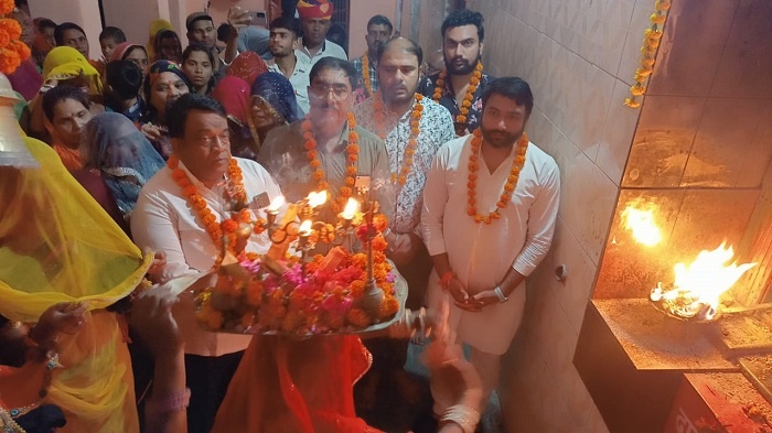 अजमेर! फाई सागर रोड काजीपुरा ग्राम स्थित प्राचीन श्री गंगा भैरव मंदिर पर विशाल महा आरती का आयोजन किया गया ! मंदिर के पुजारी भाग सिंह रावत ने बताया कि देश के कोने कोने से मनोकामना पूरी होने पर मंदिर में यात्रीगण आते हैं। मंदिर में महा आरती एवं भंडारे का आयोजन कर वैश्विक महामारी कोविड-19 संक्रमण से निजात दिलवाने की प्रार्थना की! इस अवसर पर अजमेर शहर जिला कांग्रेस कमेटी के निवर्तमान महासचिव शिव कुमार बंसल अजमेर देहात कांग्रेस सेवादल के नवनियुक्त अध्यक्ष जय शंकर चौधरी पार्षद नरेंद्र तुनवाल मनोनीत पार्षद हेमंत जोधा विवेक कड़वा कल्याण सिंह रावत जय सिंह रावत प् परवीन रावत काजीपुरा नवयुवक मंडल के सदस्य एवं ग्रामवासी उपस्थित थे !