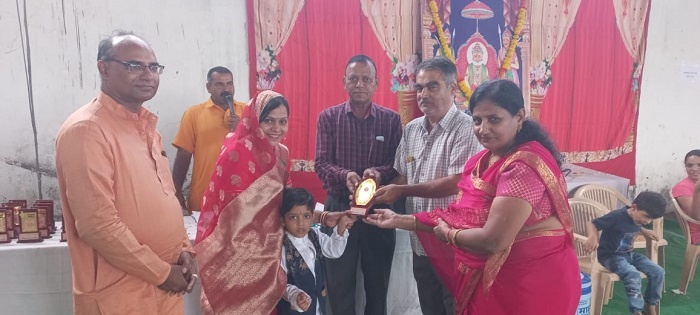 स्वर्णकार समाज द्वारा समाज के सभी महिला एवं पुरुष वरिष्ठ जनों का सम्मान किया गया जिसमें सम्मान स्वरूप साफा साल और गीता की पुस्तक भेंट की गई सम्मानित होने वाले महिला पुरुषों में लालू राम लांबा ,बंशीलाल सारडीवाल, श्री राम कुलथिया कानमल गढ़वाल ,ओम कांदला, जोहरी लाल मालीण्डिया, चिरंजीलाल बेराड़िया, राधेश्याम कुल्थिया, रामेश्वर लाल जी साड़ीवाल, घासी लाल जी खरेडा, कैलाश चंद जी साड़ीवाल, देवीलाल जी कलाई वाले, गुलाब चंद जी बड़ला वाले महिलाओ में चांद देवी, कमलाबाई, रतनी बाई, कमला देवी, रामकन्या देवी, नाथी देवी यशोदा देवी, कमला देवी, बदाम देवी, चंपा देवी, प्रेम देवी, भंवरी देवी ,मोहनी देवी, दुर्गा देवी, का का सम्मान किया गया। हीराचंद कांदला ने बताया कि समाज की प्रतिभाओं को आगे बढ़ाने के लिए विभिन्न प्रतियोगिताओं का आयोजन किया गया चेयर रेस व सामान्यज्ञान प्रतियोगिताओ का आयोजन गोविंद स्वरूप जवड़ा, रामबाबू स्वर्णकार, धन प्रकाश मालीडिया, अशोक तोसवाड़ ,मीना सोनी ,शांति स्वर्णकार, किरण सोनी, द्वारा किया गया । प्रतियोगिता में प्रथम द्वितीय व तृतीय को पुरस्कार प्रदान किया गया साथ ही सभी भाग लेने वाले प्रतिभागियों को स्मृति चिन्ह भेंट किया गया। भजन संध्या व खीर प्रसादी का आयोजन किया । कार्यक्रम में जगदीश साड़ीवाल, किशन चंद अग्रोया, रामदेव सारडीवाल,मधुसूधन तोसावाड़, चेतन सारडीवाल ,ओम प्रकाश डसानिया ,सुरेश जी बेवाल, जे.पी. सोनी, रामदेव डसानिया, जगदीश सारडीवाल, बिजवाड़,गोपाल चंद रुणवाल, मुकेश मालिडिया, पवन रुणवाल,सहित समाज के सभी परिवारजन उपस्थित हुए।