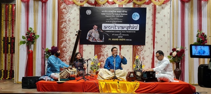 अजमेर 21 अक्टूबर। आईसीसीआर नई दिल्ली के तत्वाधान में कला विश्व कार्यक्रम के अंतर्गत कल शाम स्वामी कॉन्पलेक्स के बैंक्वेट हॉल में सुप्रसिद्ध गायक पंडित आनंद वैद्य का गायन संपन्न हुआ।
