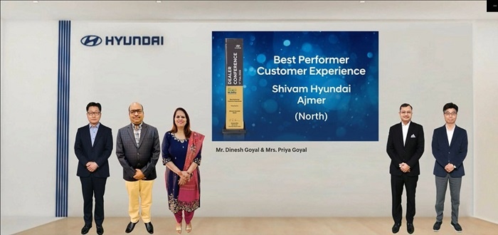 हुंडई मोटर इंडिया ने आज दिनांक ११-०२-२०२२ डिजिटल डीलर कांफ्रेंस का आयोजन किया था । इस कांफ्रेंस की शुरुआत हुंडई मोटर इंडिया के मैनेजिंग डायरेक्टर श्री Unsoo KIM ने की। इस कांफ्रेंस में हुंडई मोटर इंडिया की और से डायरेक्टर श्री तरुण गर्ग, एग्जीक्यूटिव डायरेक्टर श्री D H Park , तपन घोष ,श्री पुन्नईवानाम और भारत के सारे हुंडई डीलर प्रिंसिपल उपस्थित रहे। इस सम्मेलन का एजेंडा CY21 की सफलता का जश्न मनाना और CY’22 के लिए रणनीतियों को साझा करना था। कांफ्रेंस के दौरान सर्वोत्तम डीलर्स अवार्ड दिया गया, बड़े हर्ष की बात है की सेरेमनी के दौरान श्री Unsoo KIM ने शिवम् हुंडई के डीलर प्रिंसिपल श्री दिनेश गोयल और श्रीमती प्रिय गोयल को सम्मानित करते हुए शिवम् हुंडई अजमेर को पुरे भारत वर्ष में नंबर 1 बेस्ट परफ़ॉर्मर कस्टमर एक्सपीरियंस का ख़िताब दिया गया I ये अवार्ड शिवम् हुंडई को वर्ष २०२१ में जनवरी से दिसंबर तक सर्वोत्तम कस्टमर एक्सपीरियंस और कस्टमर संतुस्टी के लिए प्रदान किया गया। राजस्थान के कुछ ही डीलर्स को इस सम्मलेन में सन्मान नीला जिसमे अजमेर के शिवम् हुंडई को सन्मानित किया गया । शिवम् हुंडई को हुंडई राजस्थान के रीजनल सेल्स हेड श्री रजत गोयल और रीजनल सर्विस हेड श्री विवेक सिंह ने भी बधाई दी और साथ ही शिवम् हुंडई की नयी ब्रांच ज्ञान विहार खुलने की भी शुभकामनाये दी I शिवम् हुंडई का पुरे भारत वर्ष में सन्मान होना अजमेर शहर के लिए गर्व की बात है