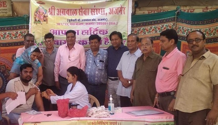 अजमेर ( ) श्री अग्रवाल सेवा संस्था, अजमेर के तत्वावधान में सामाजिक दायित्वों के निर्वहन हेतु वैश्विक महामारी कोविड-19 के बचाव व रोकथाम हेतु *”कोरोना वैक्सीनेशन कैंप”* का आयोजन आज आगरा गेट गणेश जी मंदिर के सामने नया बाजार अजमेर पर किया गया।