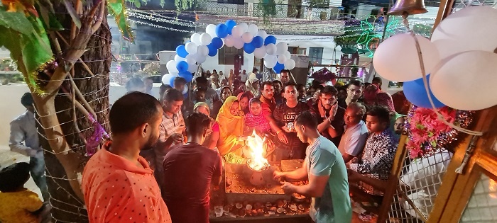 अजमेर! तेजा दशमी के पावन पर्व पर भोपो का बाड़ा स्थित प्राचीन तेजाजी के मंदिर पर विशाल मेले का आयोजन किया गया। मेले की शुरुआत क्षेत्रीय पार्षद नरेंद्र तुनवाल ने सभी भक्तों के साथ मिलकर बाबा के दरबार में ध्वजा चढ़ाई वीर तेजाजी महाराज की महाआरती के बाद प्रसाद वितरण किया गया। मेले में सुबह से ही श्रद्धालुओं का ताता लगा रहा एवं जात जड़ुला चूरमा बाटी का भोग लगाने वाले की भारी भीड़ देखी गईं। इस अवसर पर रूपा राम चौधरी,गणेशी लाल पलानिया,राधा कृष्ण भाटी,दिलीप गहलोत,कान सिंह भाटी,अमर चंद्र तुनवाल,प्रवीण भाटी आदि श्रद्धालु उपस्थित थे।