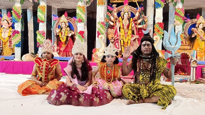ब्यावर, 27 सितंबर। अजमेर रोड स्थित अमर कुंज में दस दिवसीय श्री दुर्गा पूजा महोत्सव धूमधाम से मनाया जा रहा है। यहां देवी दुर्गा का भव्य दरबार सजाया है। मां अंबे के साथ प्रथम पूज्य देव गणेश, विद्या की देवी सरस्वती, धन की देवी लक्ष्मी और भगवान कार्तिकेय की नयनाभिराम प्रतिमाएं विराजित की है। भजनों पर झूमते हुए भक्त चुनरी लेकर माता के दरबार में पहुंचे। जयकारों के बीच देवी दुर्गा को लाल चुनरी ओढ़ाई। इसके बाद महिलाओं और बालिकाओं ने गरबा स्तुति की। कैलाश पर्वत पर भगवान शिव व माता पार्वती और बारह ज्योतिर्लिंग की सजीव झांकी सजाई गई। बड़ी संख्या में पहुंचे भक्तों ने दर्शन कर देवी का आशीर्वाद लिया।