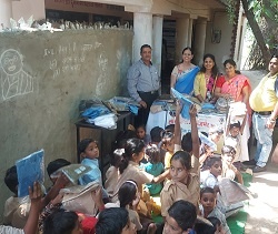 लायंस क्लब अजमेर आस्था द्वारा समाजसेवी लायन राकेश पालीवाल के सहयोग से एवम क्लब की पूर्व क्षेत्रीय अध्यक्ष लायन मधु पाटनी के संयोजन में आदर्श नगर स्थित राजकीय उच्च प्राथमिक विद्यालय गुर्जर बस्ती में स्लम एरिया से शिक्षा ग्रहण करने के लिए आने वाले सौ विद्यार्थियों को गणवेश की सेवा भेंट की गई