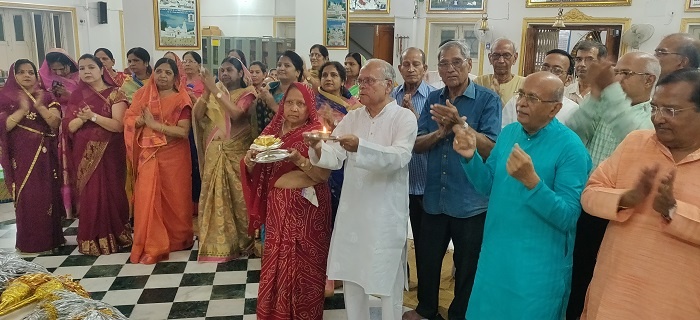 अजमेर, 1 अक्टूबर, 2022 / श्री शांतिनाथ दिगम्बर जैन जिनालय, सर्वोदय कॉलोनी में भादवा उतार के वार्षिक कलाशाभिषेक रविवार को सांय साढ़े चार बजे सम्पन्न होंगे। इस अवसर पर जिनालय से जुड़े त्यागी, व्रतियों तथा प्रतिभाओं का सम्मान भी किया जाऐगा। पूर्व संध्या पर शनिवार को भव्य आरती व भजन संध्या का कार्यक्रम हुआ, जिसमें निर्मल गंगवाल एण्ड टीम ने बहुत ही शानदार प्रस्तुतियॉं दी। गंगवाल ने साज-बाज के साथ वनमैन आर्मी के रूप में एक के बाद एक कई भजन गाए। इस अवसर पर विनय गदिया, प्रवीण सौगानी, छीतरजी गदिया, दीपक पाटनी, ताराचंद सेठी, अशोक गोधा, मंगलचंद पाटनी, रूपजी छाबड़ा, धनकुमार लुहाड़िया, अनिल पाटनी, आर के जैन, अनिल गंगवाल, सुभाष पाटनी सहित कई गणमान्य लोग उपस्थित थे।