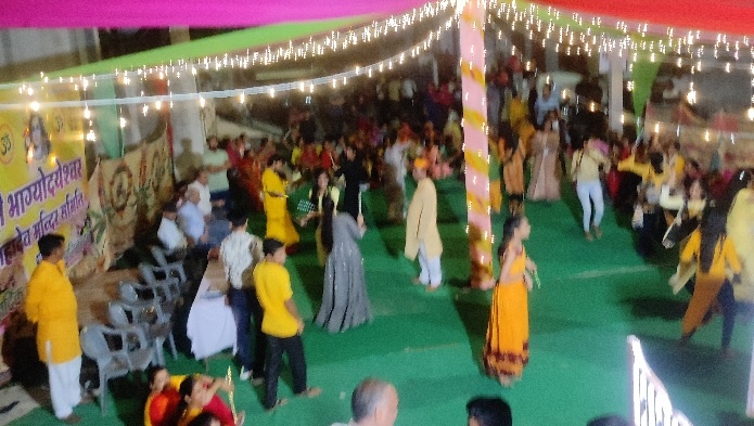 नगर में नवरात्र महोत्सव के चलते चारों तरफ डांडिया की धूम मची हुई है।अजमेर रोड स्थित भाग्योगेश्वर महादेव मंदिर समिति द्वारा भाग्योगेश्वर महादेव मंदिर प्रांगण मे आयोजित डांडिया महोत्सव मे क्षेत्र की महिला पुरुष व युवा बढ़ चढ़ कर हिस्सा ले रहे है। शुक्रवार को कार्य क्रम के मुख्य अतिथि भाजपा नेता राजेंद्र विनायका थे व विशिष्ट अतिथि भाजपा अध्यक्ष अनिल राठी व महामन्त्री रामबाबू सागरिया थे। जिनका समिति अध्यक्ष महावीर विजय, कैलाश चन्द मीना, महावीर शर्मा, जितेंद्र नामा रामचन्द्र सामंत् ने माल्यार्पण कर व साफ़ा बंधवा कर स्वागत किया। इस मौके पर भाजपा नेता राजेंद्र विनायका ने कहा की त्योहार भारतीय संस्कृति का प्रतिक है और भाग्योदेश्वर् मंदिर समिति द्वारा प्रत्येक त्योहार व पर्व सामूहिक रूप से मनाये जाते है इसके लिए मे समिति को बधाई देता हु व सभी की खुशिहाली के लिए माता रानी से प्रार्थना करता हूं इसी स्थिति तेरी व्यक्ति ने कहा कि आने वाली पीढ़ी को भारतीय संस्कृति को संस्कृति से जुड़े रखने मैं त्यौहार महत्वपूर्ण योगदान देते हैं और भाग्य देशवर मंदिर समिति सभी त्योहारों को हर्षोल्लास से सामूहिक रूप से मनाती है जिससे आज हम देख रहे हैं यहां पर नन्हे मुन्ने बालक बालिकाएं महिलाएं सभी हर्षोल्लास से इनमें भाग ले रहे हैं जिससे इनको त्योहारों का महत्व वह संपूर्ण जानकारी प्राप्त होती है क्योंकि वर्तमान में पश्चत्य संस्कृति के अंधानुकरण के चलते हुए लोग अंग्रेजीयत की तरफ मुखातिब हो रहे हैं इससे बचने के लिए ऐसे आयोजन अपना महत्वपूर्ण स्थान रखते हैं। विशिष्ट अतिथि रामबाबू सगरिया ने मंदिर समिति को ऐसे आयोजनों के लिए साधुवाद देते हुए कहा कि आपका एक छोटा सा प्रयास भावी पीढ़ी को सही राह दिखाता है अतः आप अपने मिशन में लगातार जुटे रहें मैं आप सभी को ऐसे शुभ कार्य के लिए शुभकामनाएं देता हूं।कार्यक्रम में बालक व बालिका वर्ग महिला वर्ग व पुरुष वर्ग के लिए अलग-अलग प्रतियोगिता ये आयोजित की गई जिनके विजेताओं को अतिथियों ने पुरस्कार देकर सम्मानित किया ।