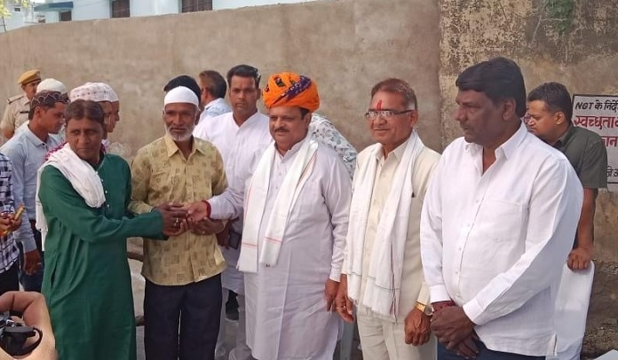 केकड़ी 22 अप्रैल (पवन राठी) मुस्लिम समुदाय का ईद उल फितर का त्योहार शहर में बड़े ही हर्षोल्लास के साथ मनाया गया सुबह की नमाज सभी मुस्लिम धर्मावलंबियों ने पटेल मैदान के नजदीक ईदगाह में पहुंचकर अदा की इस पवित्र अवसर पर सजदे में हजारों सिर एक साथ झुके और सभी ने सभी की खुशहाली के लिए एवं देश में अमन चैन की दुआ मांगी गई। मुबारक मौके पर सभी ने एक दूसरे को गले मिल दिली बधाई दी। इस पवित्र अवसर पर क्षेत्र के विधायक एवं पूर्व चिकित्सा मंत्री डॉ रघु शर्मा ने वहां पहुंचकर मुस्लिम समुदाय के सभी धर्मावलंबियों को ईद उल फितर की गले लगकर दिली मुबारकबाद दी। इस मौके पर मुस्लिम समुदाय ने विधायक डॉ. रघु शर्मा एवं अन्य कांग्रेसियों का साफा बंधवा कर इस्तकबाल किया। इस मुबारक मौके पर क्षेत्र के मौलाना अनवारूल हक पेश इमाम माणक चौक, मौलाना सईद रजा, मौलाना निसार अहमद, इंसाफ अली शोरगर ,एडवोकेट मोहम्मद हुसैन, कांग्रेस नगर अध्यक्ष हेमंत जैन, किशन गोपाल परेवा, रतन पंवार, नगर पालिका अध्यक्ष कमलेश साहू, थानाधिकारी राजवीर सिंह, एडवोकेट आशिफ हुसैन, पार्षद जितेंद्र बोयत, अब्दुल गफ्फार देशवाली, जायेद सैय्यद सहित दोनों समुदायों के कई गणमान्य नागरिक जन उपस्थित थे।