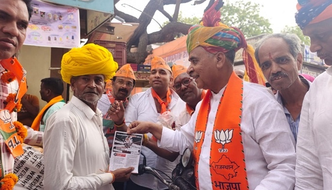 राजस्थान की कांग्रेस सरकार के कुशासन के खिलाफ 25 अप्रेल को अजमेर में होने वाले जन-आक्रोश-महाघेराव में आमजन को जोड़ने हेतु भाजपा अजमेर देहात जिलाध्यक्ष देवीशंकर भूतड़ा ने पुष्कर सरोवर की पूजा अर्चना कर पूरे जिले में आमजन को आमंत्रण देने के लिए जनसम्पर्क रैली निकाली इसी क्रम में दोपहर बाद वे केकडी पहुंचे व नगर में *जनसम्पर्क करते हुए पीले चावल व पत्रक बांट कर नगरवासियों को महाघेराव में आने का निमंत्रण दिया। इस मौके पर जिलाध्यक्ष भूतड़ा ने कहा कि राजस्थान में भय व अराजकता का वातावरण बना हुआ है महिलाए व बालिकाएं जयपुर सहित पूरे राज्य में कही पर भी सुरक्षित नहीं है, हत्या बलात्कार डकैती चोरी गोलीबारी रोजमर्रा की बात हो गई है। राजस्थान दलित व महिला अत्याचारों वअपराधों में कीर्तिमान स्थापित कर रहा है राजस्थान पुलिस का ध्येय वाक्य आमजन में विश्वास व अपराधियों में डर आज उल्टा हो रहा है आम जनता भय के माहौल में जी रही है और अपराधी बेखौफ है, युवा बेरोजगारी का दंश झेल रहे हैं इस सरकार के कार्यकाल में लगभग सभी भर्तियों के पेपर बेचने का गोरखधंधा आम हुआ है लेकिन सरकार मुफ्त-मुफ्त के नाम से लोगों को बरगलाने में लगी हुई है इन सभी विषयों से आमजन को अवगत कराने के लिए 25 अप्रैल को अजमेर में भारतीय जनता पार्टी राजस्थान के यशस्वी प्रदेश अध्यक्ष सीपी जोशी के नेतृत्व में महाघेराव का कार्यक्रम रखा गया है।आज कार्यक्रम के दौरान मंडल अध्यक्ष अनिल राठी,भाजपा नेता राजेंद्र विनायका, जिला उपाध्यक्ष सत्यनारायण चौधरी,रिंकू कंवर व भैरू भाई गुर्जर, जिला मंत्री रामकिशन गुर्जर,प्रधान होनहार सिंह, नेता प्रतिपक्ष राजेंद्र चौधरी,
