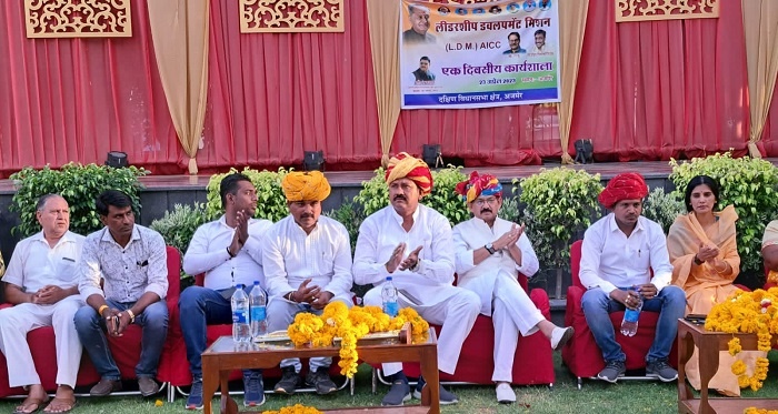 अजमेर ! कांग्रेस पार्टी ने आगामी विधानसभा चुनाव की तैयारी शुरू कर दी है कांग्रेस ने प्रदेश में आरक्षित सीटों पर विशेष फोकस कर रणनीति पर काम शुरू किया है ! लीडरशीप डवलपमेंट मिशन एक दिवसीय कार्यशाला अजमेर दक्षिण विधानसभा क्षेत्र के नानकी पैलेस में अजमेर दक्षिण के पर्यवेक्षक सौरभ बजाड़ व अजमेर दक्षिण विधानसभा कांग्रेस प्रत्याशी हेमंत भाटी की अध्यक्षता में आयोजित की गई!