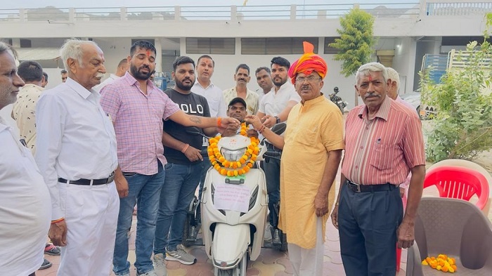 अजमेर, 7 जून। पूर्व शिक्षा मंत्री व अजमेर उत्तर के विधायक वासुदेव देवनानी ने अपने विधायक कोष से ग्राम पंचायत हाथीखेड़ा के दिव्यांग वार्ड पंच रूपसिंह रावत को ग्राम बोराज में दिव्यांग स्कूटी प्रदान की है। यह स्कूटी एक लाख 20 हजार रूपए खर्च हुए हैं।