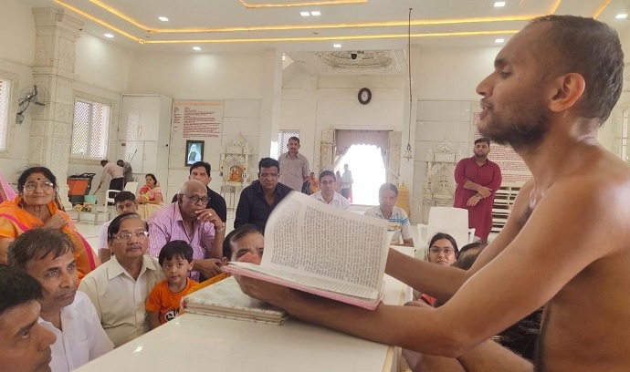 आज 10 जून को श्री दिगंबर जैन मुनि संघ सेवा जागृति मंच के तत्वाधान में चल रही संकल्प पूर्ण सद्भावना यात्रा जहाजपुर अतिशय क्षेत्र पहुंची आचार्य विशुद्ध सागर जी महाराज के परम शिष्य मुनि श्री 108 संकल्प सागर जी महाराज एवं सद्भाव सागर जी महाराज ने जहाजपुर में मंगल प्रवेश किया वहां पर मुनीसुव्रत नाथ भगवान के अभिषेक के पश्चात दोनों मुनि श्री की आहार चर्या संपन्न हुई संकल्प सागर जी महाराज ने कहा कि अजमेर दिगंबर जैन समाज की बहुत सुंदर भावना है अजमेर का चातुर्मास स्वर्णिम होगा जागृति मंच के अध्यक्ष सुनील जैन होकर ने बताया कि 71 सदस्य दल में महावीर लुहाडिया मनीष पाटनी अजय दोसी महावीर अजमेरा निर्मल गंगवाल श्याम बड़जात्या अशोक अजमेरा रमेश पाटनी कमल बड़जात्या देवेंद्र पाटनी मीना दोषी रितु पाटनी कोकिला अजमेरा आदि उपस्थित थे