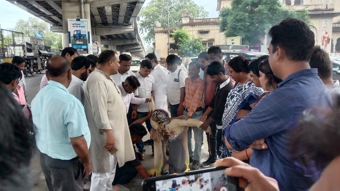 द्रोपदी कोली ने बताया कि मुख्यमंत्री केवल एक पार्टी का ही नहीं पूरे प्रदेश सभी विधायकों का होता है उनके लिए इस तरह की स्तरहिन, अमर्यादित अषोभनिय भाषा का प्रयोग चार बार की विधायक को शोभा नहीं देता। इसी के विरोध में कांग्रेसजन व कांग्रेसी पार्षदगण द्वारा विधायक अनीता भदेल का पुतला फूंक कर अपना रोष प्रकट किया गया।
