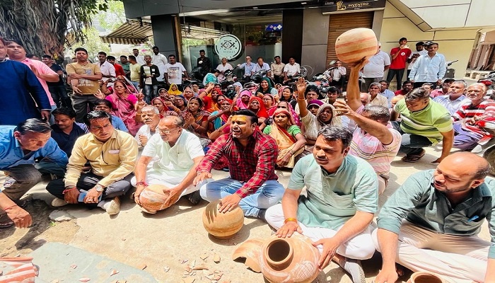 – जलदाय दफ्तर के बाहर महिलाओं और विधायक ने फोड़े मटके, दिया धरना
