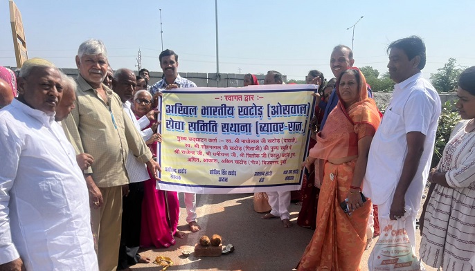 स्वागत गेट का लोकार्पण समारोह श्रीमान राजेंद्र जी धर्मी चंद जी त्रिलोक जी खटोड़ विजयनगर/ मुंबई के द्वारा किया गया।संस्था के अध्यक्ष श्री गोविंद सिंह खटोड़ ने लाभार्थी परिवार का माला व शॉल से स्वागत किया। इस अवसर पर स्वागत गेट के भूमि पूजन लाभार्थी मीठालाल ,विकास ,नरेंद्र खटोड़ आमेट,जीवराज, राजेश ,मुकेश खटोड़ अजमेर, गौतम ,दिनेश खटोड़ अजमेर,पुखराज खटोड़ कराटी वाले भीलवाड़ा, बालूलाल खटोड़ सगरेव सहित संरक्षक धर्मी चंद खटोड़, विजयनगर गौतम खटोड़ भिनाय,नोरतमल खटोड़ गुलाबपुरा,देवेंद्र खटोड़ ठाणे मुंबई,मूलचंद खटोड़ ,बाबूलाल खटोड़ भीलवाड़ा,ज्ञान खटोड़ जयपुर भी उपस्थित रहे।