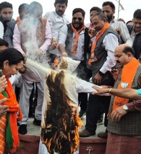 पश्चिम बंगाल मे संदेशखाली में महिलाओं पर हो रहे अत्याचार के खिलाफ भाजपा ने ममता बनर्जी सरकार का पुतला फूंका