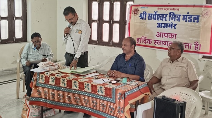 अजमेर 6 मई ( ) श्री सर्वेश्वर मित्र मंडल, अजमेर की मासिक बैठक संस्था अध्यक्ष पूर्व पार्षद शैलेंद्र अग्रवाल की अध्यक्षता में श्री गौड़ ब्राह्मण सभा भवन, डी आर एम ऑफिस के पास, अजमेर में आयोजित की गयी जिसमें संस्था के भावी कार्यक्रमों सहित कई महत्वपूर्ण निर्णय लिए गये l