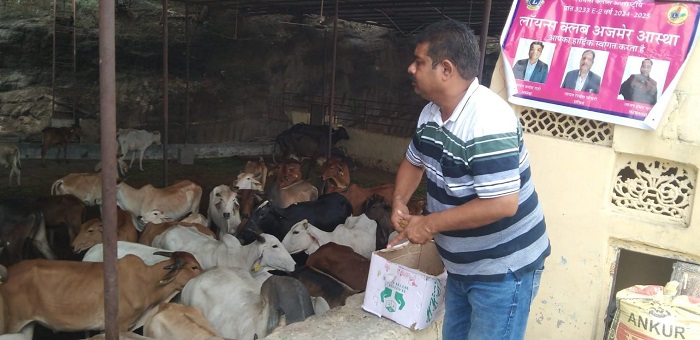 लायंस क्लब अजमेर आस्था द्वारा क्लब सचिव लायन राजेश चौधरी के सहयोग से नागफानी स्थित आनंद गोपाल गऊशाला की 200 से अधिक अशक्त गोवंश को गौमाता का प्रिय व्यंजन गुड,दलिया एवम बाटा (पशु आहार) अर्पण किया गया