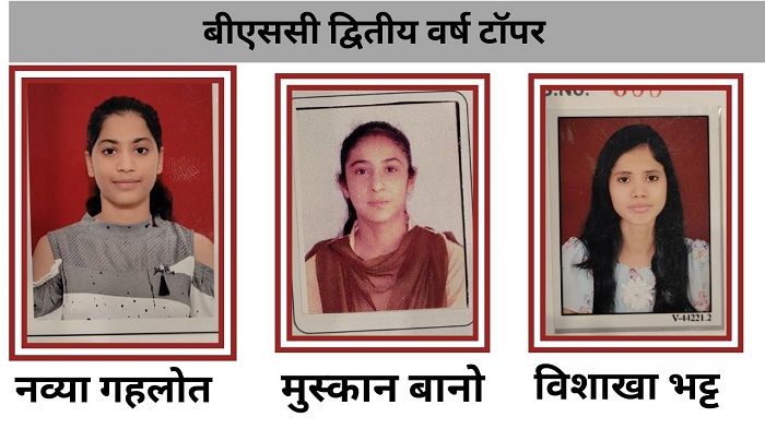 श्री वर्द्धमान कन्या पी.जी. महाविद्यालय में महर्षि दयानंद सरस्वती द्वारा जारी किए गए बीएससी (विज्ञान संकाय) द्वितीय वर्ष का परीक्षा परिणाम शत-प्रतिशत रहा । परीक्षा में 73.03 प्रतिशत के साथ प्रथम स्थान नव्या गहलोत, 72.44 प्रतिशत के साथ द्वितीय स्थान मुस्कान बानो व 72 प्रतिशत के साथ तृतीय स्थान विशाखा भट्ट ने हासिल किया ।