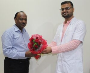 एक सादा समारोह में हॉस्पिटल के निदेशक सुनील मित्तल ने बुके भेंट कर डॉ सुनील परिहार का स्वागत किया एवं हॉस्पिटल में उनके सुखद प्रवास की कामना की।