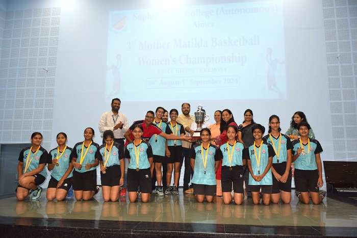 सोफिया कन्या महाविद्यालय (स्वायत), अजमेर में आयोजित तीन दिवसीय मदर मटिल्डा महिला बास्केटबॉल टूर्नामेंट फाईनल मुकाबलें में रविवार को खिताब के प्रबल दावेदार सेंट मेरी कॉन्वेट स्कूल ने अपनी जीत का अभियान जारी रखते हुए फाईनल में सोफिया स्कूल खेतड़ी को 71-59 अंको के अंतर से हराकर खिताब अपने नाम किया।