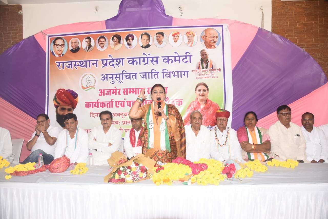 अजमेर / आज भारतवर्ष में भाजपा सरकार द्वारा संविधान को अंगूठा दिखाते हुए मनु स्मृति के माध्यम से सरकार चलाने का प्रयास हो रहा है।यह सरकार धार्मिक उत्पाद फैलाकर लोगों का ध्यान विकास से मोड़ना चाहती हैl 70 साल में जो कांग्रेस शासन में विकास हुआ उसे कौन सा अंधे का घर इस प्रकार सरकार के मंत्री का अंधभक्त प्रचार करते हैं lजैसे कि भारत 2014 में ही आजाद हुआ और सारे काम नरेंद्र मोदी ने कराए हैंl भारत की जनता नेहरू इंदिरा गांधी राजीव गांधी में मनमोहन सिंह के समय किए गए कार्यों को भूल नहीं सकती। उन्होंने कहा की दलित समाज में जितने