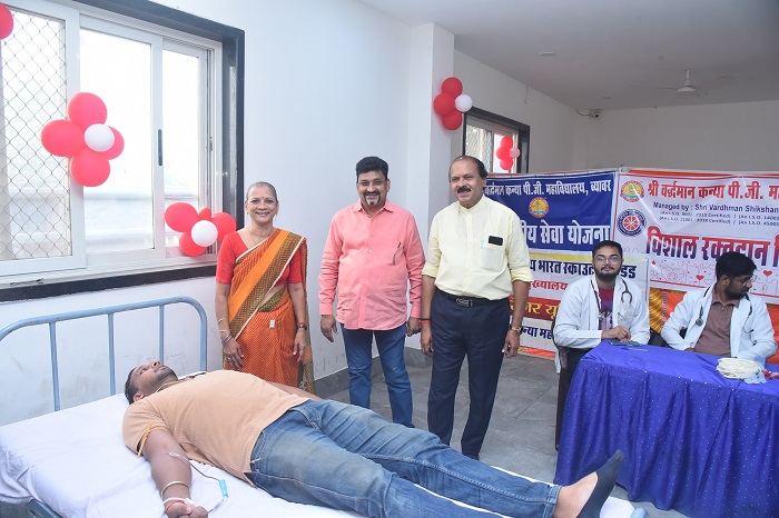 रक्तदान कर जीवनदान के उद्देश्य को साकार करते हुए श्री वर्द्धमान शिक्षण समिति द्वारा संचालित श्री वर्द्धमान कन्या पी जी महाविद्यालय ब्यावर में राष्ट्रीय सेवा योजना एवं रेड रिबन क्लब के संयुक्त तत्वावधान में विशाल स्वैच्छिक रक्तदान शिविर का आयोजन किया गया।