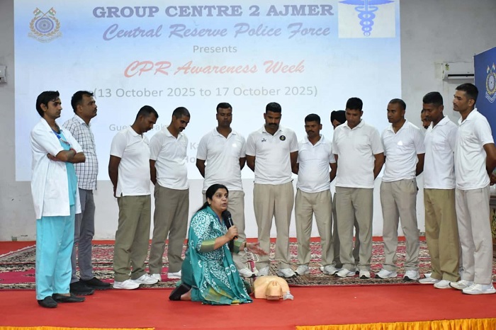 अजमेर,16 अक्टूबर (.)। भारत सरकार के स्वास्थ्य एवं परिवार कल्याण मंत्रालय द्वारा आयोजित राष्ट्रव्यापी कार्डियो–पल्मोनरी रिससिटेशन (सीपीआर) जागरुकता सप्ताह के अंतर्गत सीआरपीएफ ग्रुप-2 के सहयोग से मित्तल हॉस्पिटल एंड रिसर्च सेंटर, अजमेर द्वारा एक सीपीआर प्रशिक्षण कार्यक्रम का आयोजन  किया गया।