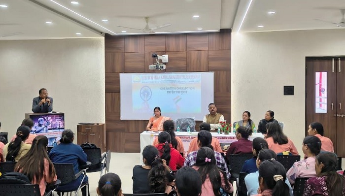 महाविद्यालय प्राचार्य डाॅ. लोढा ने छात्राओं को संबोधित करते हुए बताया कि वर्तमान में देश के सामने ज्वलंत विषय एक राष्ट्र एक चुनाव जो भारत में चुनावी प्रक्रिया में एक क्रांतिकारी बदलाव की नींव रखता है । यह विषय लोकसभा और राज्य विधानसभाओं के चुनाव चक्रों को एक साथ रखकर लगातार चुनाव से शासन में व्यवधान और संसाधनों की बर्बादी जैसी दीर्घकालिक चुनौतियों को दूर करने का आश्वासन देता है । एक साथ चुनाव लागू करने के लिए चरणबद्ध दृष्टिकोण भारत में अधिक कुशल और स्थिर चुनावी माहोल का मार्ग प्रशस्त कर सकता है।
