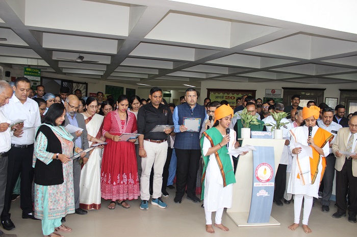 गौरतलब है कि वंदे मातरम् गीत को 1875 में बंकिम चंद्र चट्टोपाध्याय जी ने ‘आनंदमठ’ उपन्यास में लिखा था।” 1896 में भारतीय राष्ट्रीय कांग्रेस के कोलकाता अधिवेशन में रवींद्रनाथ टैगोर ने पहली बार मंच से ‘वंदे मातरम्’ का गायन किया। आजादी के बाद 24 जनवरी 1950 में रवींद्रनाथ टैगोर के लिखे जन—गण—मन को देश का राष्ट्रगान और बंकिमचंद्र चट्टोपाध्याय के लिखे वंदे मातरम् को एक समान दर्जा देते हुए राष्ट्रगीत के तौर पर संविधान में अपनाया गया। प्रशासनिक विभाग के सीनियर मैनेजर जनसंपर्क सन्तोष कुमार गुप्ता ने कार्यक्रम का संचालन किया।