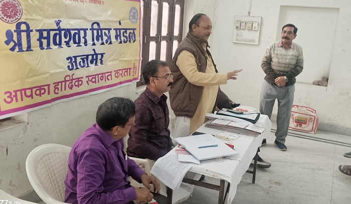 अजमेर 23 नवंबर ( ) श्री सर्वेश्वर मित्र मंडल अजमेर की नवंबर माह की मासिक बैठक एवं संस्था अध्यक्ष पूर्व पार्षद शैलेंद्र अग्रवाल की अध्यक्षता में श्री गौड़ ब्राम्हण सभा भवन, रेलवे सरक्युलर रोड़ (डी आर एम ऑफिस के पास) अजमेर में हर्षोल्लास के साथ आयोजित की गयी l