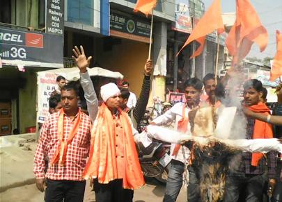 लखनऊ जिला ईकाई ने सरोजनी नगर स्थित स्कूटर इण्डिया चौराहे पर उ0प्र0 सरकार के स्वास्थ मंत्री का स्वाइन फलू को लेकर पुतला दहन किया । शिवसेना जिला प्रमुख सूर्यभान विश्वकर्मा ने कहॉ कि स्वाइन फलू अपने पैर तेजी से फैला रहा है। जिसके चलते लगभग 198 लोगों को इस बिमारी ने अपने चपेट में ले रखा । उ.प्र. सरकार एंव जिला प्रशासन इसे रोक पाने में असफल हो रहा है। वही स्वास्थ मंत्री कहते है अभी हालात बेकाबू नहीं है। क्या स्वास्थ मंत्री चाहते है कि हालात बेकाबू हो और इस गम्भीर बिमारी से लोग अपना दम तोडे स्वास्थ मंत्री का ध्यान इस दिशा में कोई भी रचनात्मक कार्य नही कर पा रहा है। इस कारण मंत्री जी को पद पर रहने की कोई अधिकार नही है। वे तुरन्त अपना इस्तीफा दे।