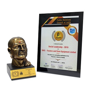 टैफे को पब्लिक रिलेशन्स कॉउंसिल ऑफ इंडिया द्वारा सामाजिक नेतृत्व के लिए चाणक्य पुरस्कार से सम्मानित किया गया
