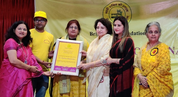 प्रसिद्ध लेखिका एवं वरिष्ठ स्तंभकार डॉ नीलम महेंद्र को बृजभूमि फाउंडेशन, मथुरा, संरक्षक स्थानीय सांसद, हेमा मालिनी, द्वारा लेखन के क्षेत्र में उनके विशेष योगदान के लिए विशिष्ट सम्मान से सम्मानित किया गया। उल्लेखनीय है कि बृजभूमि फाउंडेशन अलग अलग शहरों में नारी शक्ति को सम्मान नामक मुहिम के अंतर्गत साहित्य कला सामाजिक आदि क्षेत्रों में महिलाओं को उनके विशेष योगदान के लिए यह सम्मान प्रदान करती है। यह कार्यक्रम जीवाजी विश्वविद्यालय के गालव सभागार में आयोजित किया गया जिसमें मुख्य अतिथि मध्यप्रदेश शासन की पूर्व मंत्री श्रीमती माया सिंह जी एवं विशेष अतिथि महिला आयोग की पूर्व अध्ययक्षा श्रीमती प्रमिला वाजपेयी थीं। कार्यक्रम के दौरान संस्था के संस्थापक अश्विनी चौधरी मध्यप्रदेश अध्यक्ष श्रीमती दीपाली सिन्हा ग्वालियर प्रभारी श्रीमती प्रिया अरोरा संस्कार मंजिरी की महामंत्री श्रीमती नीलम गुप्त विशेष रूप से उपस्थित थीं। संस्था द्वारा आयोजित इस कार्यक्रम में ग्वालियर शहर की 51 प्रभावशाली महिलाओं का चयन करके समाज में उनके उल्लेखनीय योगदान के लिए सम्मानित किया गया।