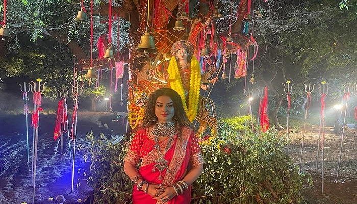 आदिशक्ति मां दुर्गा की पांचवी स्वरूपा स्कंदमाता के पूजन के अवसर पर भोजपुरी की लोकप्रिय सिंगर – एक्टर अक्षरा सिंह का देवी गीत ‘चौसठ जोगीनिया माई’ का धांसू टीजर आउट कर दिया गया है। इसमें अक्षरा सिंह देवी दुर्गा की भक्ति में लीन नज़र आईं है, जहां वे कभी माता के अस्त्र के साथ भी नृत्य मुद्रा में दिखीं, माथे पर सिंदूर लगाते रौद्र रूप में नजर आई हैं। अक्षरा के इस गाने का टीजर उनके ऑफिशियल चैनल से ही रिलीज हुआ है। अब जल्द ही यह गाना भी रिलीज किया जाएगा।
