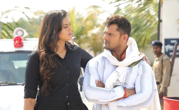 बात करें इन तस्वीरों की तो इसमें खेसारीलाल यादव एक आम ग्रामीण की भूमिका में नजर आ रहे हैं। कुछ तस्वीरों में खेसारी अपर्णा मलिक के साथ हैं, तो कुछ तस्वीर में फिल्म में आईपीएस बनी यामिनी सिंह के साथ आकर्षक लुक में नजर आ रहे हैं। इस फिल्म से अपर्णा भोजपुरी पर्दे पर डेब्यू कर रही हैं, जो सेट पर खूब मेहनत करती नजर आती हैं। वे इससे पहले आधा दर्जन साउथ की फिल्में कर चुकीं है और अब भोजपुरी इंडस्ट्री में इस फिल्म से जलवा बिखेरने को तैयार हैं। खेसारीलाल यादव के साथ उनकी स्क्रीन केमेस्ट्री सटीक होने वाली है। इसका दावा फिल्म के निर्देशक नीरज – रणधीर कर चुके हैं। फिल्म की शूटिंग उत्तर प्रदेश के सोनभद्र जिले के रॉबर्टगंज में जोर शोर से चल रही है। और फिल्म की शूटिंग अभी पुरी भी नहीं हुई है, लेकिन खेसारीलाल यादव के इस पायलट प्रोजेक्ट ने इंडस्ट्री में तहलका मचा रखा है।