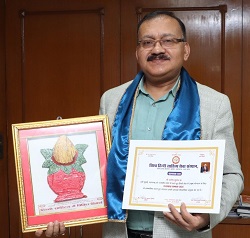 समारोह के मुख्य अतिथि मंडलायुक्त डॉ. सुरेंद्र कुमार पांडेय ने कहा कि संस्कृत और हिन्दी एक ही सांस्कृतिक परंपरा की भाषाएँ हैं। अंग्रेज़ी जानना आवश्यक है, पर हिन्दी की कीमत पर नहीं। विशिष्ट अतिथि डॉ. एन. बी. सिंह ‘हरियाली गुरु’ रहे। इस अवसर पर अनेक साहित्यकारों को सम्मानित किया गया। उसी क्रम में, कोंकण रेलवे के अध्यक्ष एवं प्रबंध निदेशक तथा प्रसिध्द कवि श्री सन्तोष कुमार झा को उनके नेतृत्व में किये जा रहे उत्कृष्ट राजभाषा कार्यान्वयन हेतु “राजभाषा सम्मान– 2024” से गौरवान्वित किया गया। उल्लेखनीय है कि श्री झा के चार काव्य संग्रह ‘उन्मुक्त’, ‘सूरज का वारिस’, ‘फूल, कलम और बंदूक’ तथा ‘स्याही का सिपाही’ प्रकाशित हो चुके हैं। अन्य सम्मानित साहित्यकारों में डॉ. वंदना अग्निहोत्री, डॉ. सीमा वर्मा, डॉ. विजयलक्ष्मी, रजनी प्रभा, फरहत, राणा प्रताप सहित अनेक विद्वान शामिल रहे। मंच संचालन डॉ. सीमा वर्मा एवं रश्मि चौबे ने किया तथा डॉ. गोकुलेश्वर कुमार द्विवेदी ने आभार व्यक्त किया।